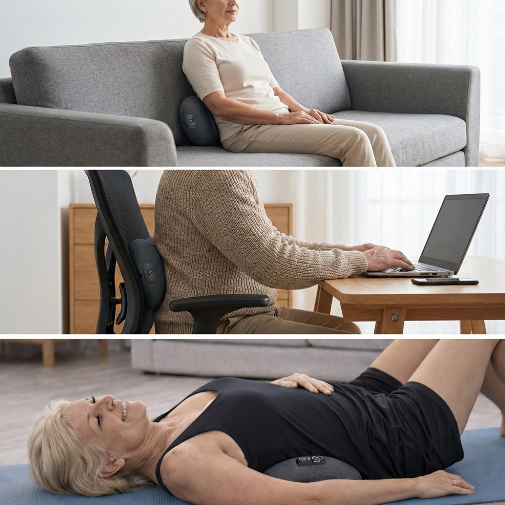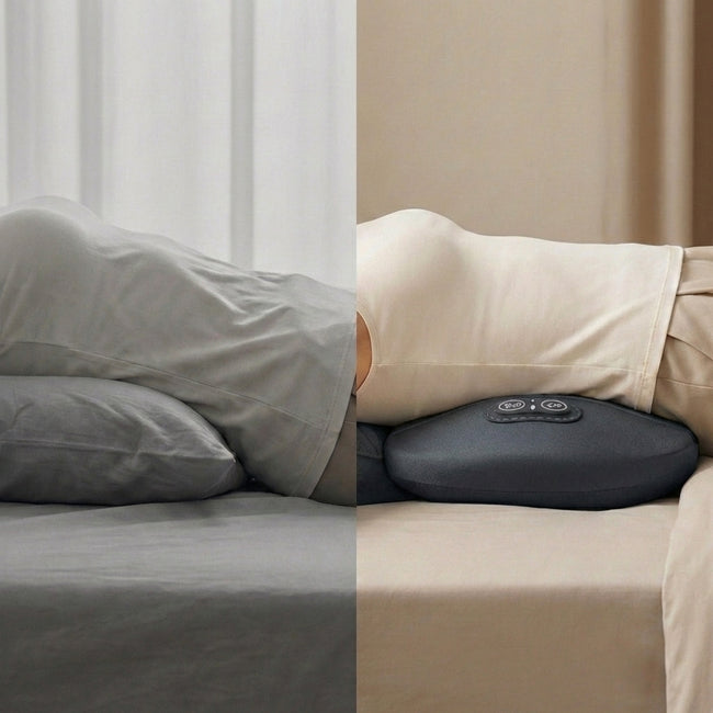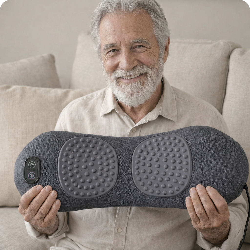 Zwei strukturierte Massagezonen stimulieren die Muskulatur gezielt im unteren Rücken. Mit zuschaltbarer Wärmefunktion für tiefgehende Entspannung – ideal nach langen Arbeitstagen oder beim Liegen auf dem Sofa.